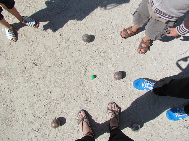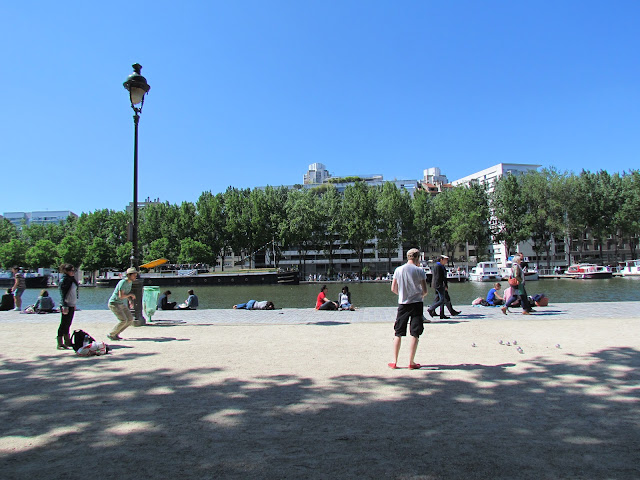 Do outro lado da ponte, onde juro que vi o filho de François Hollande, vamos buscar cadeiras e bolas para jogar à petanque ao barOurcq, é self service, completamente à confiança. A minha filha aproveita este clima de boa vontade para mostrar a sua faceta de batoteira e insiste, porque insiste, que a sua bola ficou mais perto da bola verde. Bloqueio num conflito interior, entre o orgulho e a vergonha de lhe ter passado esta parte da minha personalidade. A equipa adversária, dá por finalizada a partida, alegando não haver condições para se continuar. Por mim, tudo bem, duas partidas são mais do que suficientes, só mesmo um bobo* ou um reformado da bretanha ou do país basco para aguentar uma tarde inteira disto.